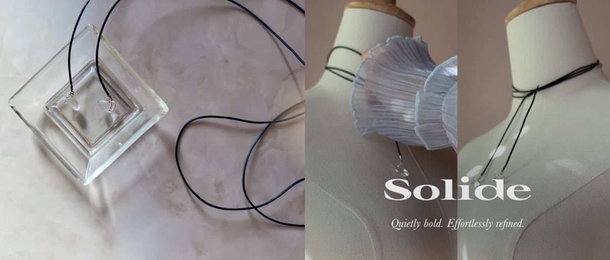 質感で魅せる、静かなモード。 上質な日本製の牛革と水晶を組み合わせ、 素材の質感をそのまま生かしたノンクラスプネックレスです。 結ばずロングで楽しんでも、 さりげなく結んでチョーカーとしても。 巻き方ひとつで、印象を変えてお使いいただけます。 光を受けて澄んだ輝きを放つ水晶が、 しなやかな黒のラインに浮かび上がります。 透明感と強さ、どちらもまとうチョーカーです。 長さ:約136㎝ 牛革、水晶、ガラスビーズ