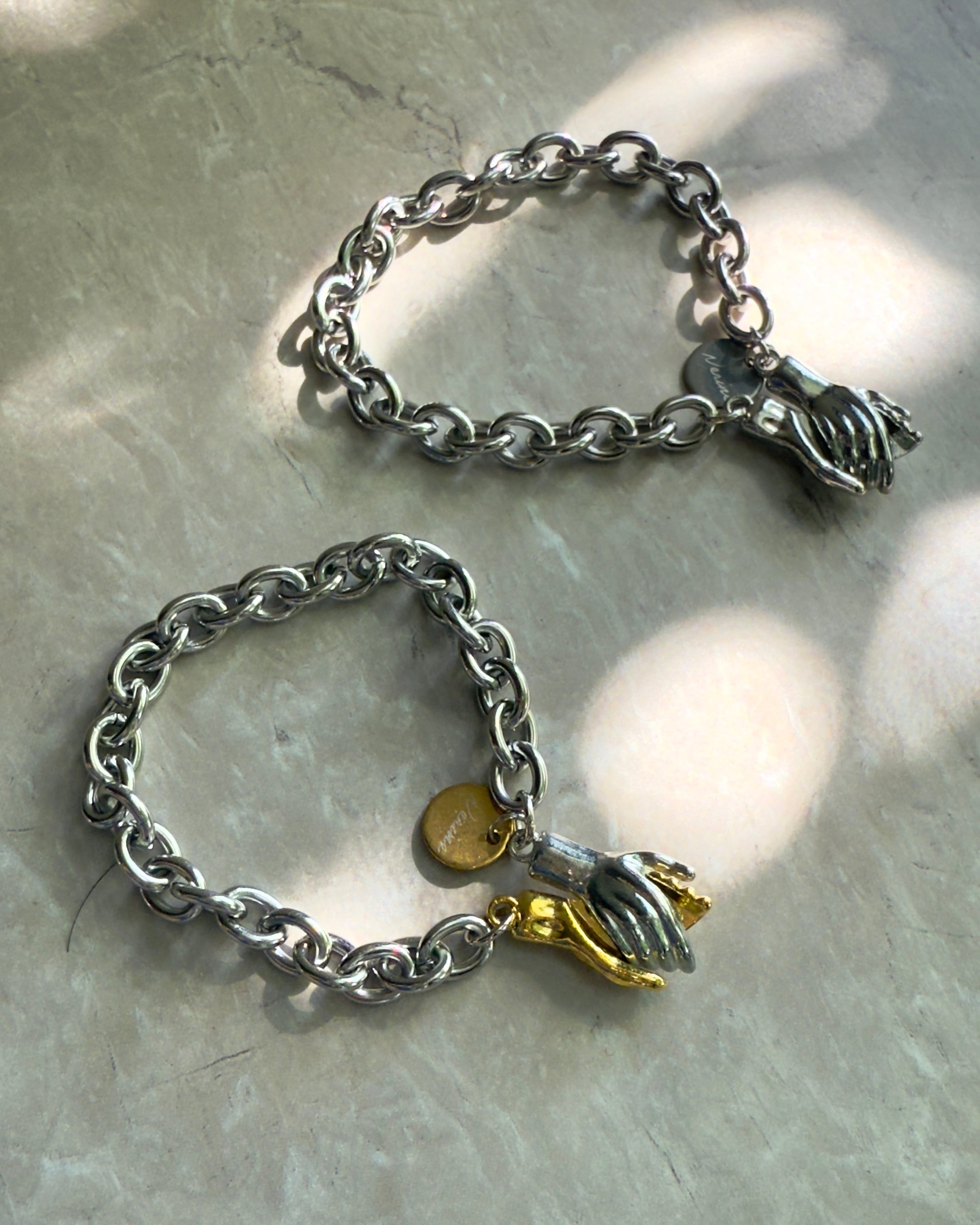 寄り添うように重なる手元の造形美で、