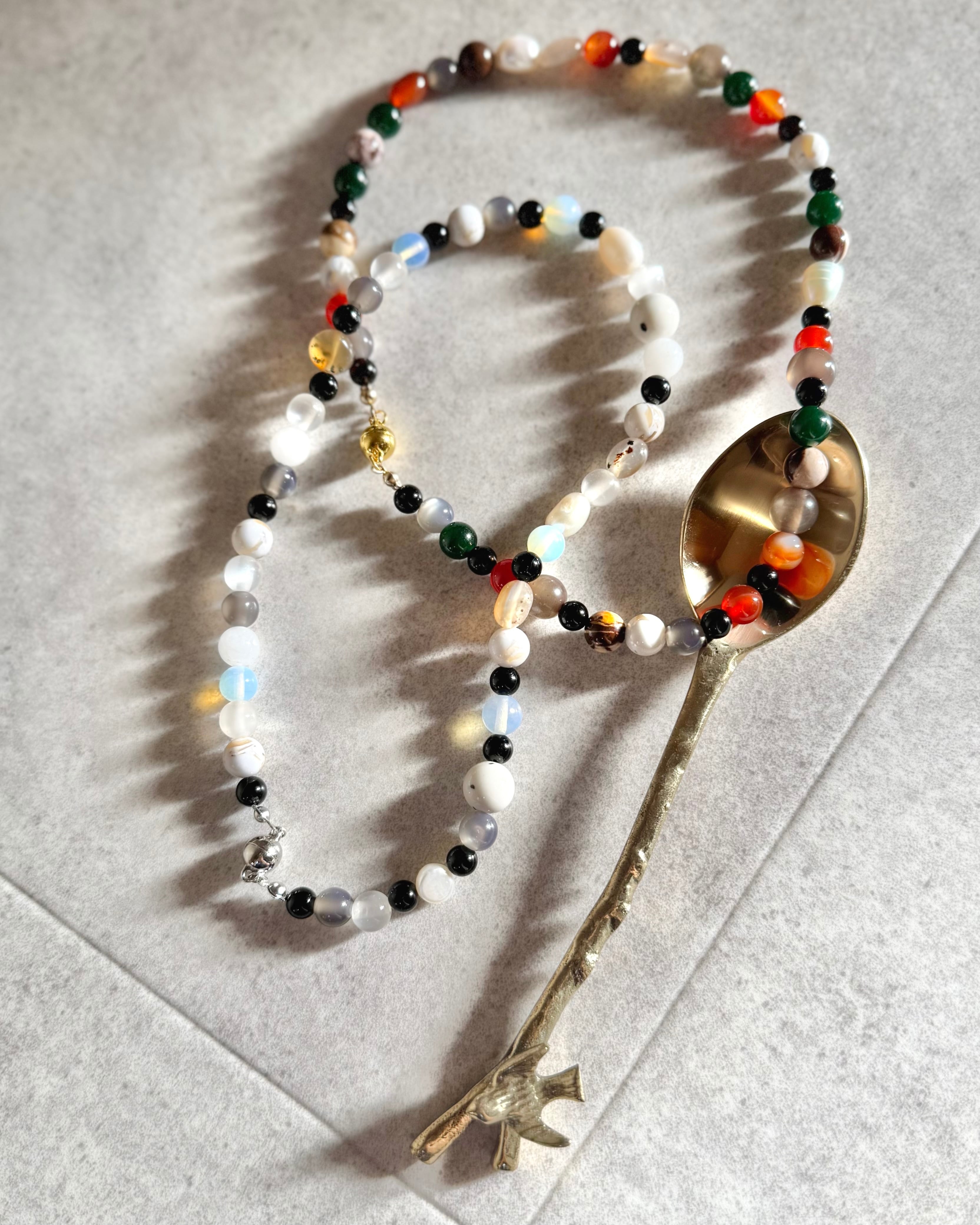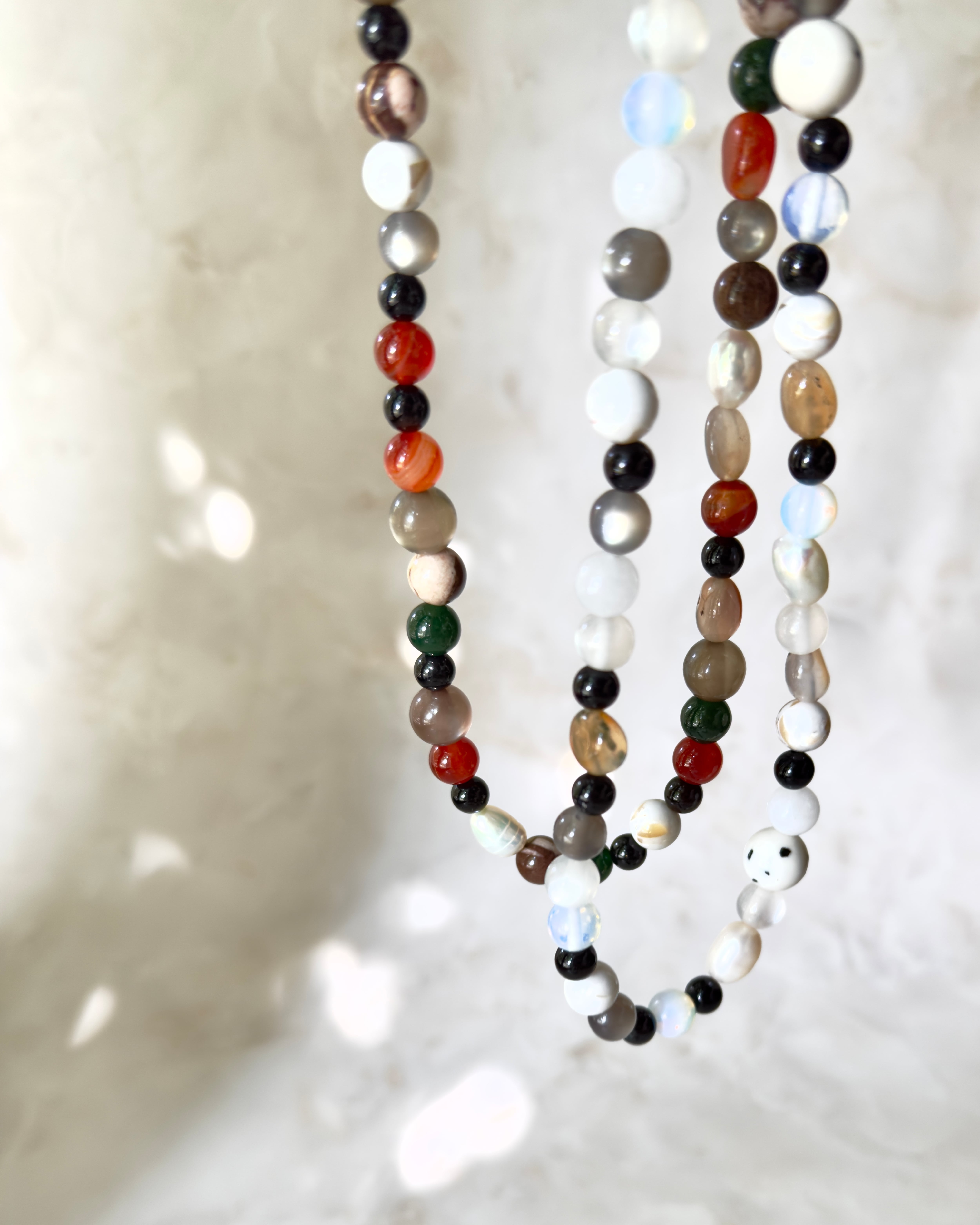 光と影がまざり合うようなモノトーンのリズムを描いたネックレス。