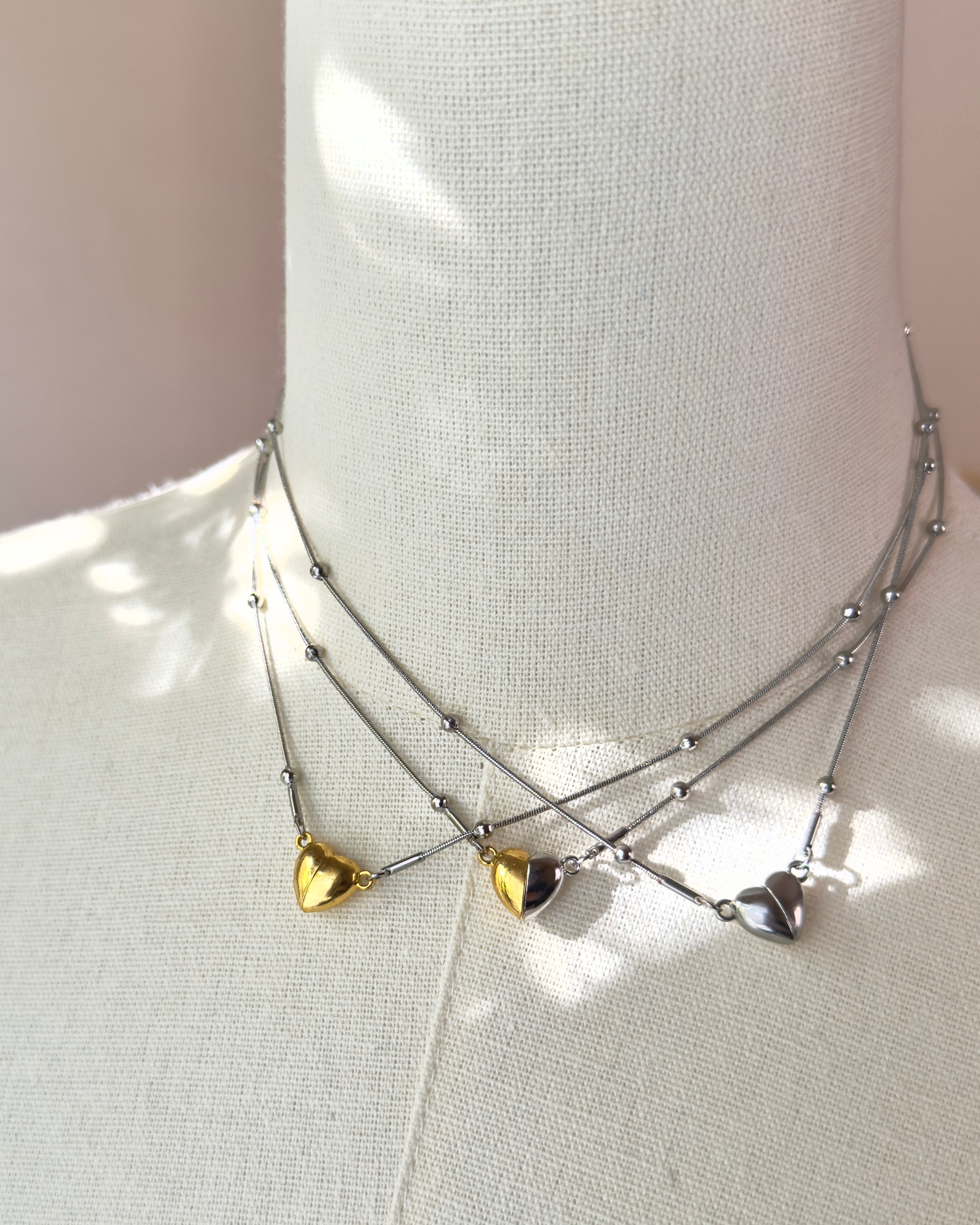 磁力で寄り添うハートモチーフが印象的な、